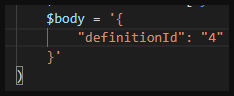 Add the value for definitionId to the script like so.