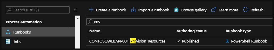 Create the runbook in your automation account, add the script, and make sure it’s set to published.