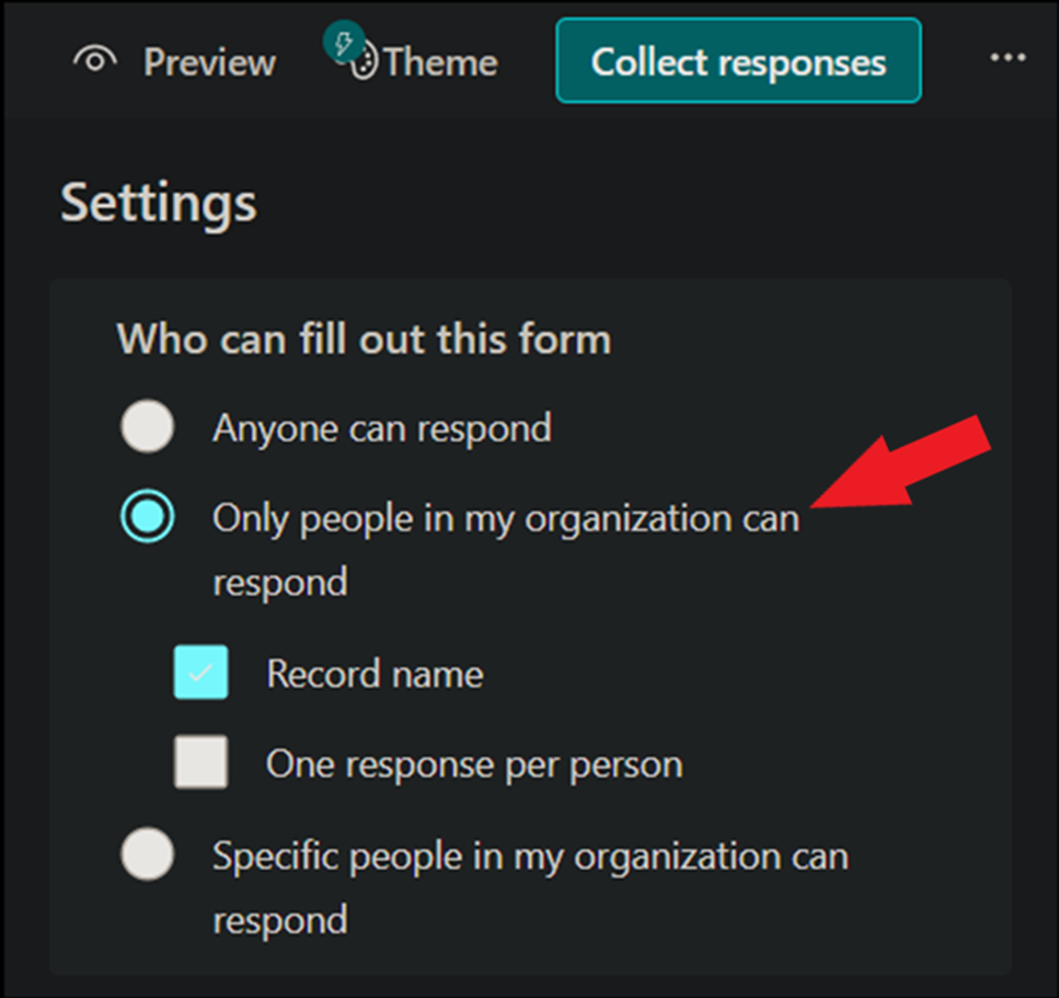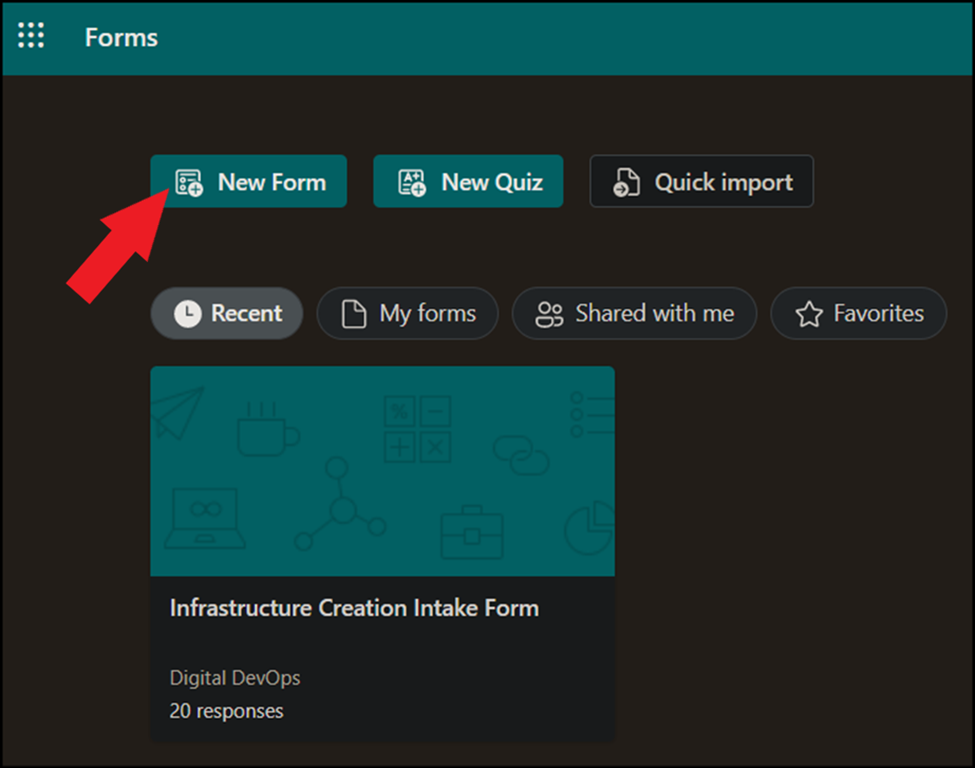 I started by going to https://forms.microsoft.com and signed in with my corporate M365 account. (Alternatively, SharePoint can be used instead but that brings up more questions that I wasn’t able to answer now.)